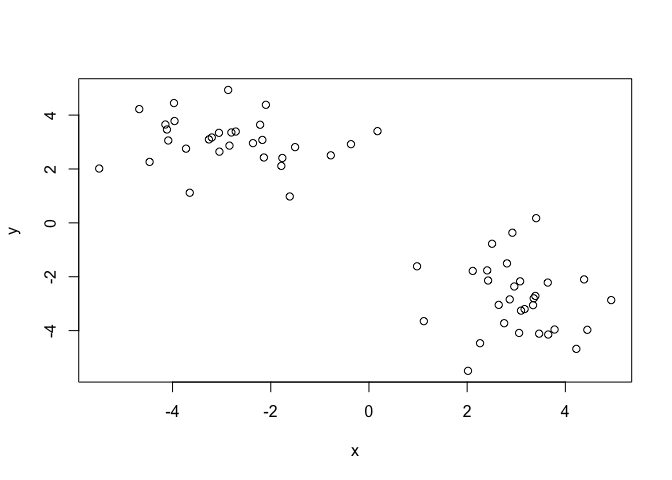 tmp <- c(rnorm(30, 3), rnorm(30,-3))